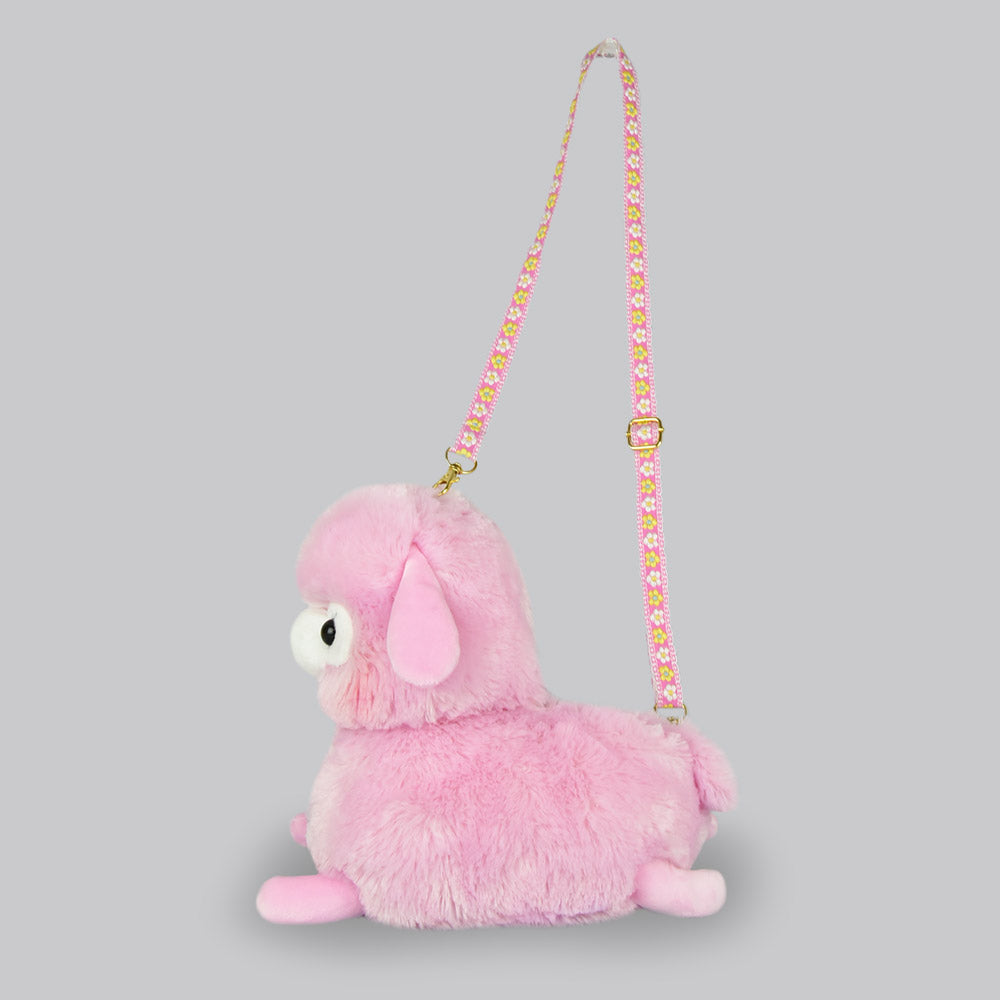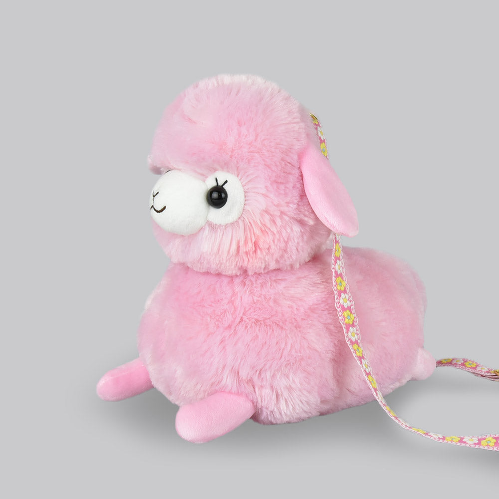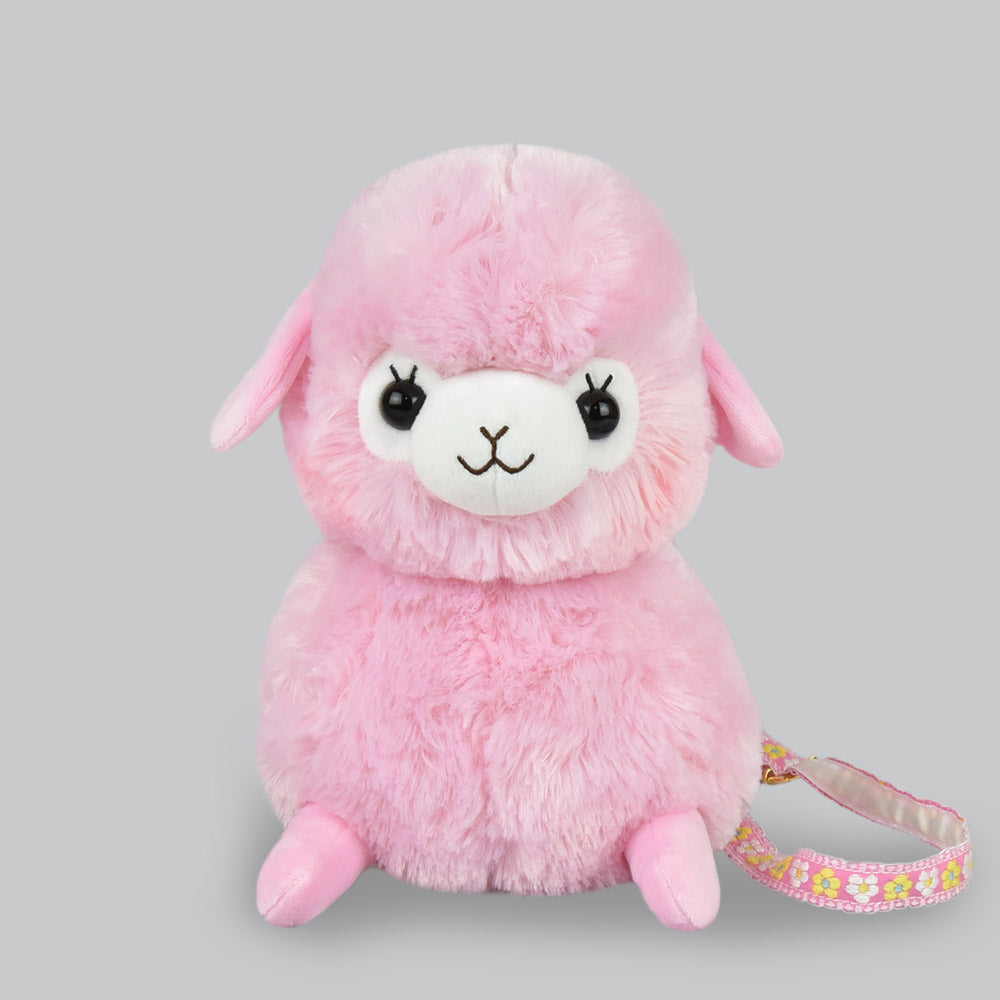 Amuse Alpaca Cute Plush Backpack Pink Stuffed Animal Satchel Bag with Adjustable Strap